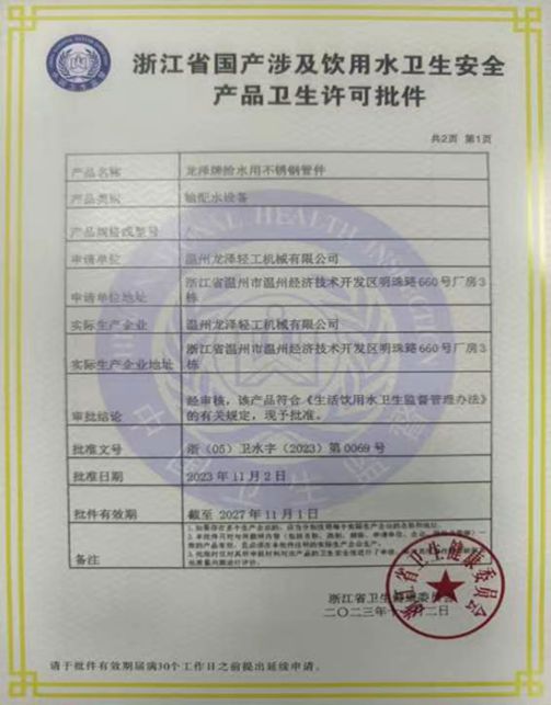 浙江省科技型中小企業(yè)溫州市科技(創(chuàng)新)型企業(yè)溫州經(jīng)濟(jì)開發(fā)區(qū)區(qū)級(jí)科技型企業(yè)高新技術(shù)企業(yè)證書食品制藥機(jī)械行業(yè)信用A級(jí)企業(yè)流體設(shè)備十大知名品牌榮譽(yù)證書2023年度制藥機(jī)械行業(yè)科技型企業(yè)50強(qiáng)2023年度制藥機(jī)械行業(yè)高質(zhì)量發(fā)展企業(yè)20強(qiáng)安全生產(chǎn)標(biāo)準(zhǔn)化三級(jí)企業(yè)榮譽(yù)證書止回閥實(shí)用新型專利證書直通視鏡實(shí)用新型專利證書手動(dòng)換向閥實(shí)用新型專利證書人孔蓋實(shí)用新型專利證書氣動(dòng)球閥實(shí)用新型專利證書卡箍式球閥實(shí)用新型專利證書高密封球閥實(shí)用新型專利證書蝶閥實(shí)用新型專利證書產(chǎn)品質(zhì)量信息浙江省國(guó)產(chǎn)涉及飲用水衛(wèi)生安全產(chǎn)品衛(wèi)生許可批件